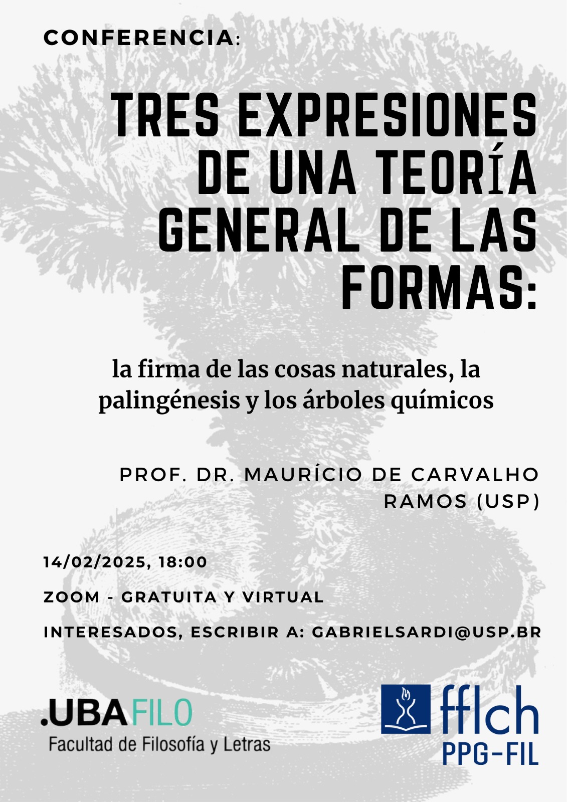 Estimadxs: Compartimos información sobre un seminario que se realizará en el marco de la Cooperación Académica entre la Universidad de Buenos Aires y la Universidad de San Pablo: El día viernes 14 de febrero, a las 18 horas, dictará la conferencia: "Tres expresiones de una teoría general de las formas: la firma de las cosas naturales, la palingénesis y los árboles químicos" (ver resumen más abajo). La actividad se realizará por Zoom, en el siguiente link: https://zoom.us/j/98790650555?pwd=qFZ2bcKiDVKyChgjzjnjpJ0ogyDYNT.1 Los días martes 18 y miércoles 19 de febrero, a las 17 horas, dictará un mini curso sobre sus temas de investigación (ver detalles más abajo). La actividad se realizará por Zoom, en el siguiente link: https://zoom.us/j/98790650555?pwd=qFZ2bcKiDVKyChgjzjnjpJ0ogyDYNT.1 Resumen de la conferencia: "Tres expresiones de una teoría general de las formas: la firma de las cosas naturales, la palingénesis y los árboles químicos" 14 de febrero de 2025. En esta conferencia presento los primeros resultados obtenidos en el desarrollo de un proyecto que pretende proponer la presencia de una teoría general de las formas en tres episodios de la historia epistemológica de la cultura científica moderna. El primero se refiere a la doctrina de la firma de las cosas naturales, según la cual Dios marcó todas las criaturas con un signo o firma que se revela externamente en su forma, color, textura y otras cualidades directamente observables. Estas firmas informan el propósito particular para el cual cada ser fue creado, usualmente asociado a aplicaciones terapéuticas. El segundo consiste en un estudio de la noción de palingénesis. En su sentido más general, designa un proceso de regeneración o renacimiento de seres preexistentes. El sentido que me interesa está vinculado a la creencia en la palingénesis de los cuerpos orgánicos, particularmente la de los vegetales, fenómeno en el que las plantas reducidas a cenizas por calcificación son resucitadas a través de procedimientos químicos y alquímicos especiales. El tercer episodio se refiere a estudios y experiencias que involucran una forma especial de cristalización que los químicos denominaron árbol metálico. En estas cristalizaciones se producen estructuras arborescentes a partir de la disolución, en medio acuoso, de un metal en ácido. El árbol de Diana, árbol filosófico o árbol de plata, es uno de los más conocidos de estas estructuras. Los dos primeros episodios se sitúan en el siglo XVII, articulándose con ciertos elementos de la físico-teología, la farmacología y la química del período, mientras que el último aparece en ciertos logros de la química francesa de la primera mitad del siglo XVIII. Resúmenes de clases: Clase 1: Reflexiones filosóficas sobre la relación entre vida, técnica y ética. 18 de febrero de 2025 "En esta clase presento la idea de que la vida tiene como características básicas la homeostasis, la reproducción, la evolución y la temporalidad. A partir de estas tres características, propongo que los organismos vivos tienen intereses que definen una técnica vital. Finalmente, presento una concepción ética que respeta estos intereses vitales considerando que todas las especies tienen igual derecho a vivir. Clase 2: Leibniz y el nuevo sistema de la naturaleza. 19 de febrero de 2025 En esta clase presento algunos aspectos de la filosofía de Leibniz centrada en el concepto de mónada - todavía definida como forma vital. Presento el tema del origen y fin de las mónadas, que son naturalmente indestructibles, pero son creadas y pueden ser aniquiladas por Dios. Finalmente, presento el tema de la relación entre el alma y el cuerpo discutiendo la noción de armonía preestablecida. Estos temas se relacionan con la clase 1 en lo que respecta a los organismos vivos que, como las mónadas orgánicas, son entidades individuales y activas". Un cordial saludo Dra. Verónica Tozzi Thompson (Directora) Prof. Facundo Jaime (Secretario académico) Prof. Lucía Ceballos (Comunicación) -- Departamento de Filosofía Facultad de Filosofía y Letras - Universidad de Buenos Aires (54-11) 5287-2826 Puan 480 (CP: C1406CQJ) - C.A.B.A. - Web: filosofia.filo.uba.ar - Facebook: facebook.com/defilo.uba [1] - YouTube: youtube.com/defilouba [2] Links: ------ [1] http://www.facebook.com/defilo.uba [2] http://www.youtube.com/defilouba
