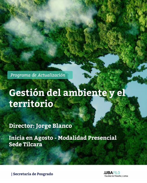 Estimadxs: Compartimos la información del Programa de actualización en Gestión del Ambiente y el Territorio. -- Convocamos el miércoles 13 de agosto a las 17 hs. a una reunión virtual informativa dirigida tanto a quienes ya se inscribieron como a quienes estén interesados en el Programa de actualización en Gestión del Ambiente y el Territorio [1], que comenzará a dictarse en agosto de 2025 con modalidad presencial en la Sede de Tilcara. Enlace de la reunión: [2] https://teams.microsoft.com/l/meetup-join/19%3ameeting_YjAyZGJkOTAtOGIyNi00O... Para obtener información sobre los requisitos y modos de inscripción, hacé click aquí [3], recomendamos inscribirse antes de la fecha de cierre para asegurarse la vacante. Se dictará los viernes y sábados con modalidad presencial intensiva en la sede Tilcara con una frecuencia mensual y algunos seminarios se darán de manera virtual. Se cursarán 4 materias en el año 2025 entre los meses de agosto a noviembre y otras 4 en el primer cuatrimestre del 2026. Las clases del Taller de Trabajo Final Integrador y el seminario temático del mes de noviembre de 2025 se dictarán de manera virtual. En este enlace [4] puede conocer una síntesis de la programación y fechas precisas del año 2025. Por consultas académicas escribir a: gestionambienteterritorio@gmail.com Saludos cordiales --- Instituto de Geografía "Romualdo Ardissone" Facultad de Filosofía y Letras - Universidad de Buenos Aires Web: http://geografia.institutos.filo.uba.ar/ IG: institutogeografiauba [5] Facebook: @InstitutodeGeografiaUBA [6] [7] Links: ------ [1] https://posgrado.filo.uba.ar/pa-gestion-ambiente-y-territorio [2] https://teams.microsoft.com/l/meetup-join/19%3ameeting_YjAyZGJkOTAtOGIyNi00O... [3] https://posgrado.filo.uba.ar/requisitos-711 [4] https://drive.google.com/file/d/16p9I1ok4BIVjjmz6HPOFBgfLorMjI2aw/view?usp=s... [5] https://www.instagram.com/institutogeografiauba/ [6] https://www.facebook.com/InstitutodeGeografiaUBA [7] http://geografia.institutos.filo.uba.ar/